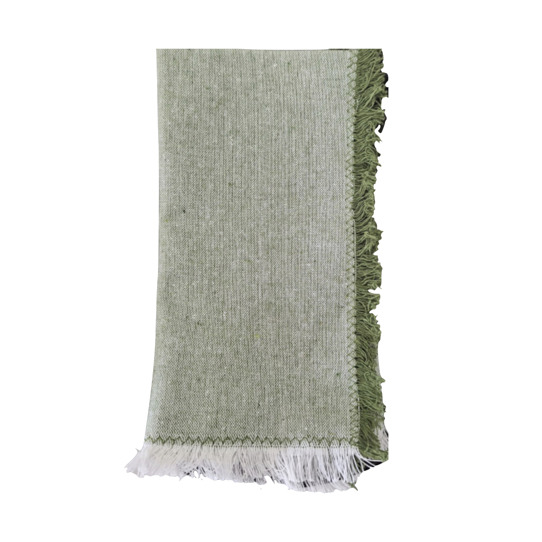 Fringed Green & White Napkin