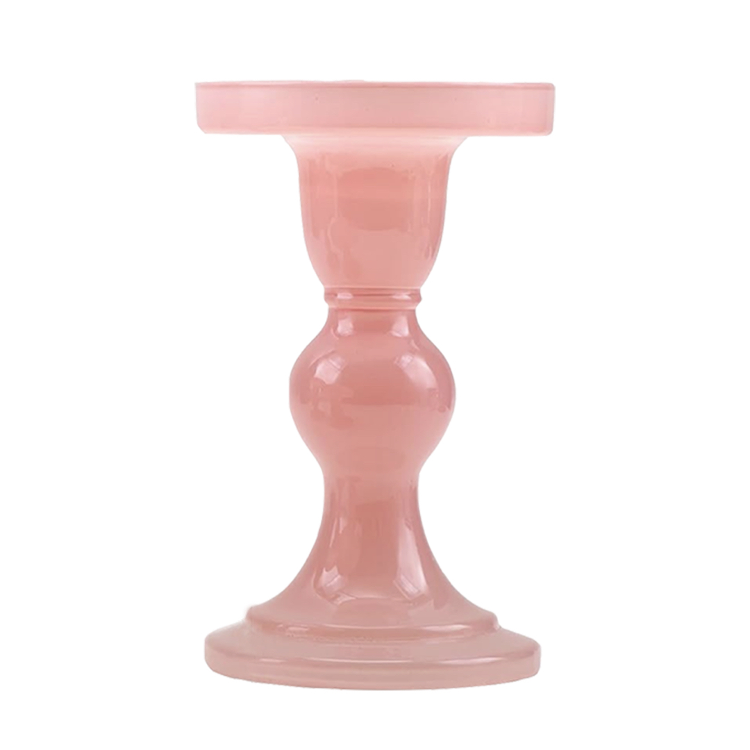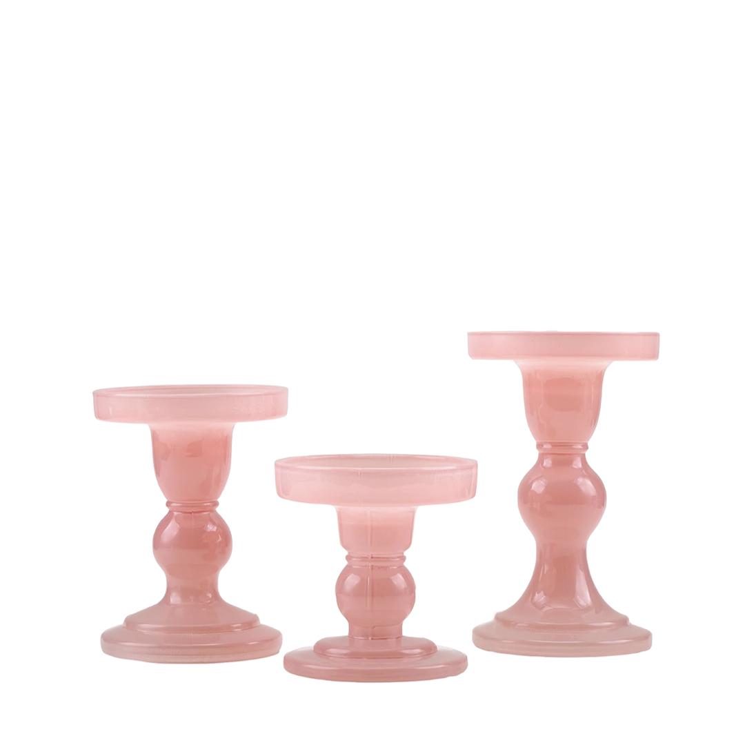 Set Thick Pink Glass Candle Holders